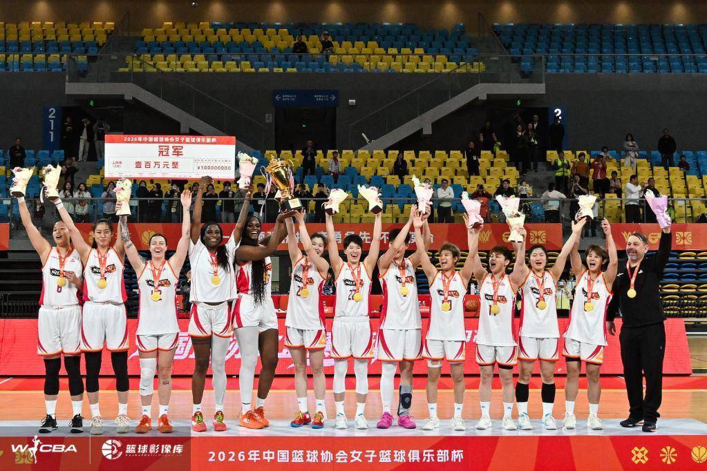 四川队捧起2025-2026赛季WCBA总冠军奖杯