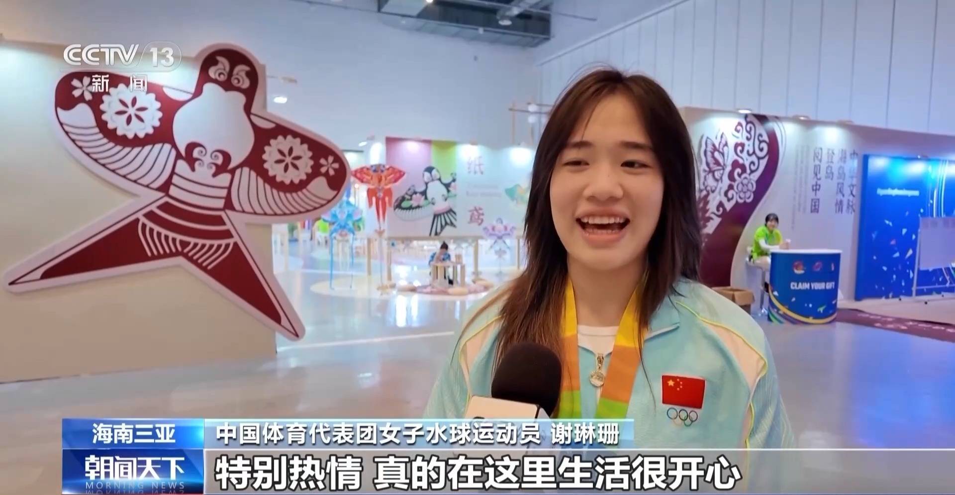 中国体育代表团女子水球知道员 谢琳珊:咱们餍足的时辰会去力量房作念一些拉伸活动,好像是少量跑动之类的,下楼就不错到。每天有大巴车接送,也有责任主说念主员带咱们,非常难得,真是在这里生涯很慷慨。
